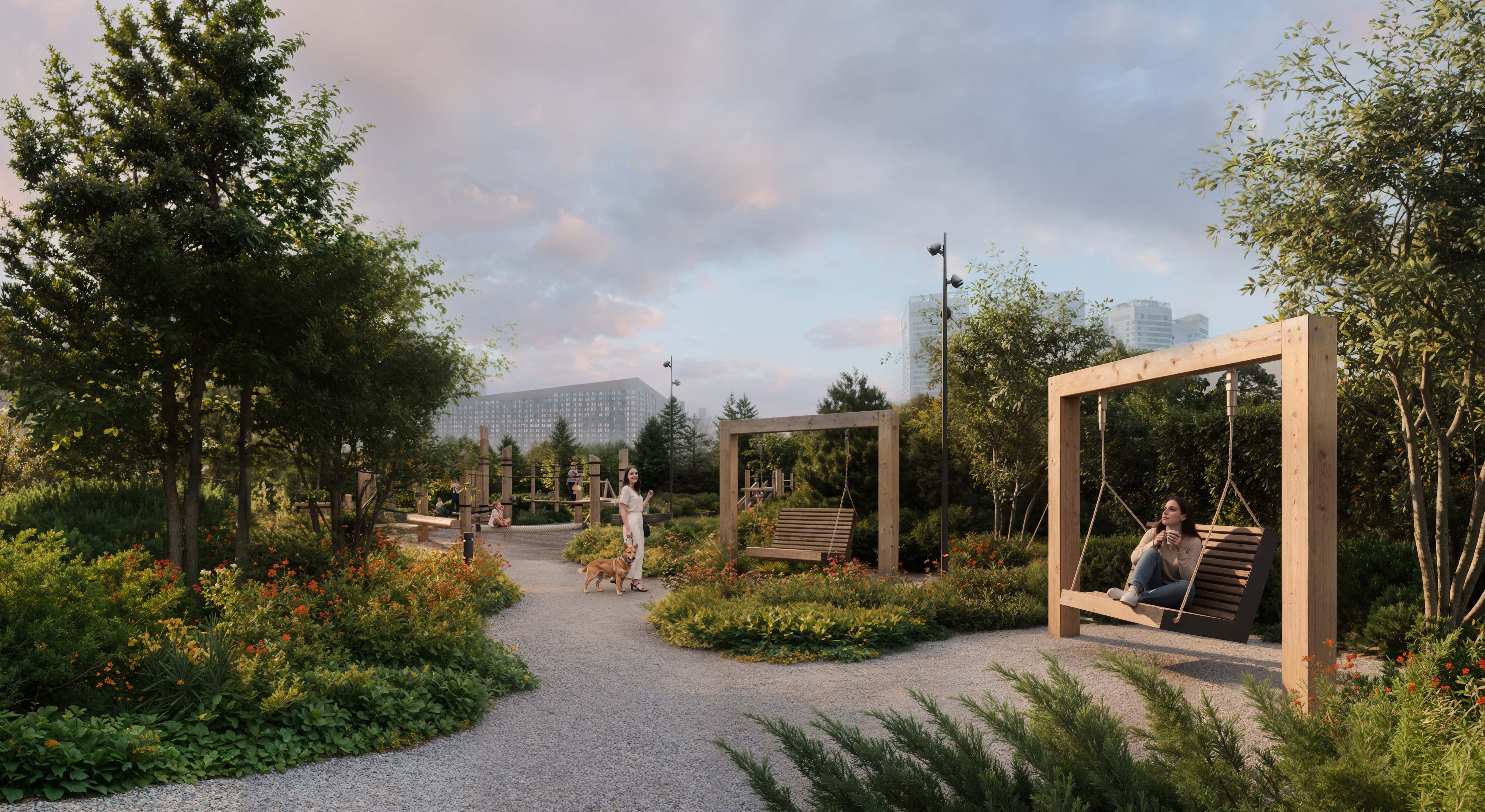 Парк выполнен в природном стиле и предназначен для спокойного досуга и творческого вдохновения.