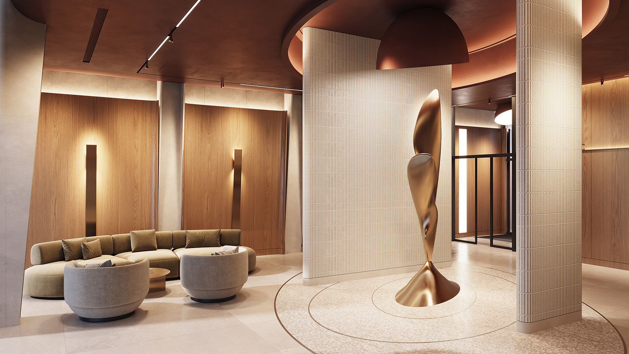 Приватные общественные пространства для резидентов и ретейл на первых этажах.